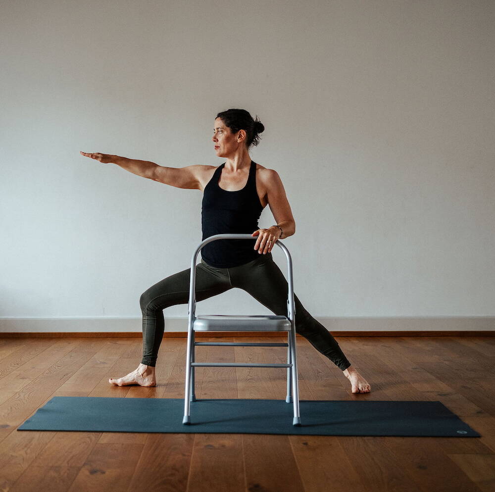 Beginnend auf der Yogamatte erwartet dich eine ganzheitliche Asana-Klasse, die dich nach einer aufwärmenden Sequenz im ersten, dynamischen Teil mit dem Stuhl als Hilfsmittel vertraut macht. Wir nutzen die Struktur des Stuhls ganz gezielt, um unser Repertoire im Bereich der Umkehrungen und aktiven Herzöffner auszuloten und zu erweitern. Wir spielen mit verschiedenen Möglichkeiten, die uns der Stuhl unterschiedlich positioniert anbietet und erleben eigentlich vertraute Yogastellungen aus einer neuen Perspektive.